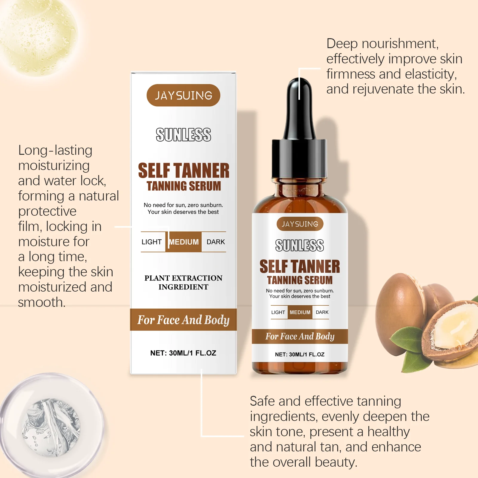 Jaysuing Dark Tanning Oil Tan Enhancer Intensifier Face Body Bronzer Self Tanner Moisturizing Nourishing Skin Sunless Tanning Accelerator 30ml/60ml(Optional)