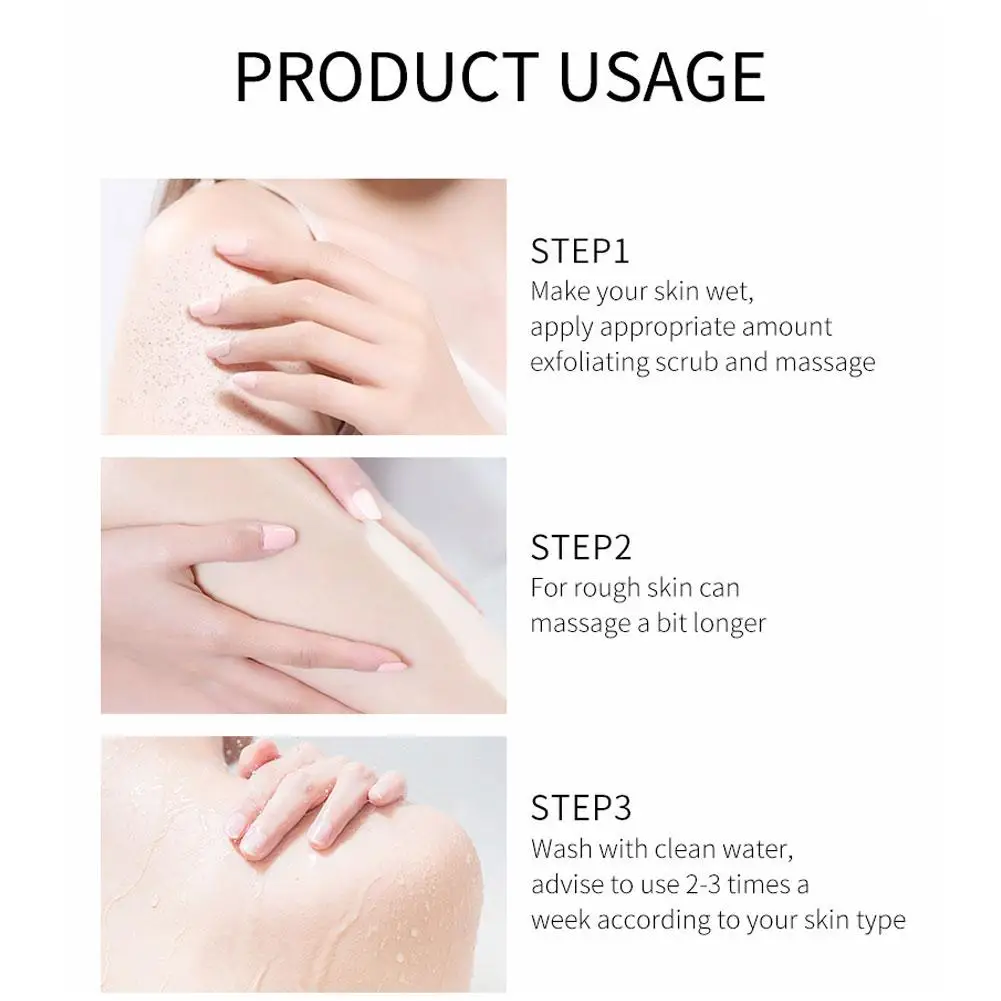 After moisturizing the body, take an appropriate amount of scrub and gently massage the skin in a circular motion.
