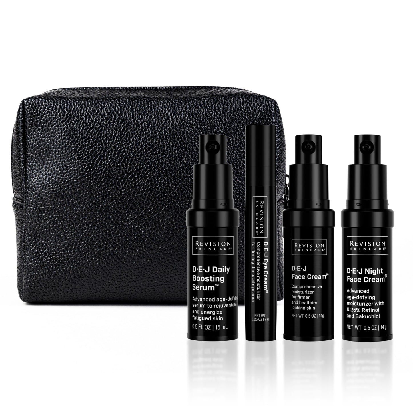 • STEP 1 (AM/PM) D·E·J Daily Boosting Serum 0.5 FL OZ | 15 mL The only anti-aging serum that boosts skin’s cellular energy and is clinically proven to visibly improve skin firmness, fine lines and wrinkles, radiance, texture, and tone. Patented technology counteracts the visible signs of skin aging at the source, so skin looks, feels, and acts younger.